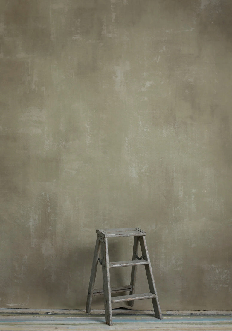- General Description: A continuous sage green backdrop extending from wall to floor, finished with a hand-painted texture that delivers natural tonal depth and a timeless studio look.